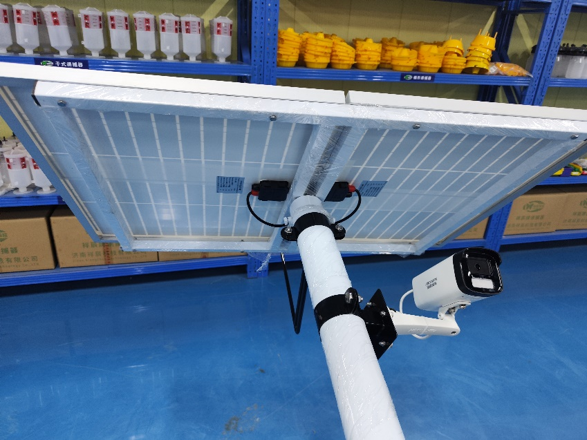 10、電池板接線,注意紅線為正極、黑(藍(lán))線為負(fù)極,兩塊電池板并聯(lián)接到延長線上